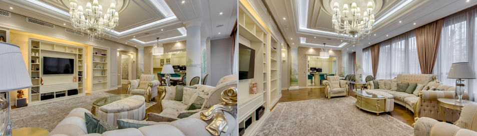 4. Отделка ониксом придает внушительности, и изумительно красиво декорирует огонь. Правда, в пентхаусе на Иваньковском шоссе два камина лишь незначительная часть фишек интерьера. В своем классическом, даже царском, виде, его ультрасовременная техническая составляющая восхищает. Умный дом, встроенная регулируемая аудиосистема, очистка воздуха, спец шкафы для вина и множество других возможностей для комфортной жизни.