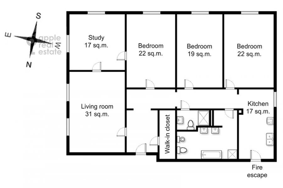 Floor plan of the 5-room apartment at Myasnitskaya ulitsa 21/8s9